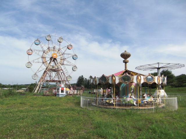 まわらなくなった観覧車とメリーゴーランドのセット。